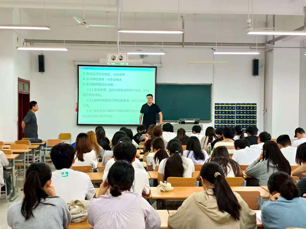 会上,实习指导教师团队围绕认知实习的核心意义与具体安排展开详细讲解。指导教师首先强调,认知实习是专业教学的重要组成部分,更是同学们从校园迈向社会、衔接未来就业的关键一步。指导教师指出,实习不仅是对课堂理论知识的实践验证,更是提升综合能力、树立职业认知的重要契机,要求同学们以严肃认真的态度对待,提前做好实习准备,严格遵守实习单位与学校的各项规章制度,全力完成实习任务。同时,指导教师特别关注实习安全与就业观念引导,提醒同学们在实习期间务必重视人身与财产安全,时刻保持警惕;并建议大家理性分析当前就业形势,端正择业心态,在实习岗位上主动学习、虚心请教,将踏实的作风融入实践,切实提升专业技能与职业素养。