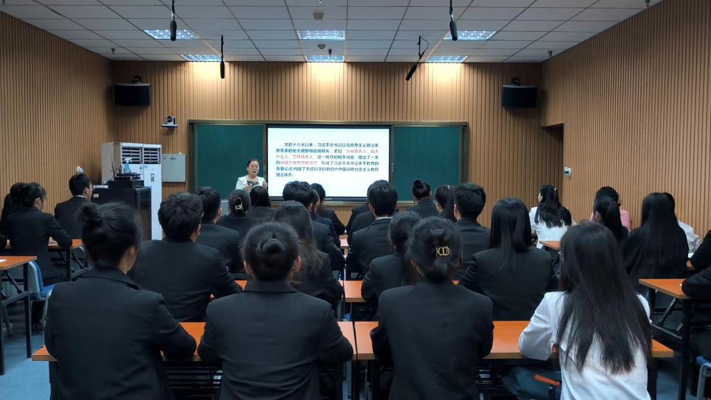 为推进学习贯彻习近平新时代中国特色社会主义思想主题教育走深走实,切实提升思政课凝心铸魂育人实效,5月23日下午,校党委委员、副校长徐静为中国·ok138太阳集团2022级服装设计与工程专业学生上了题为《感悟思想伟力踔厉奋发前行》的思政课。
