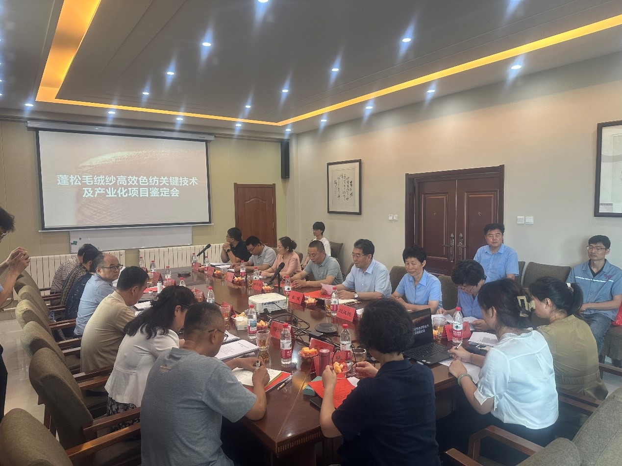 2025年7月4日,由中国纺织工业联合会组织的“蓬松毛绒纱高效色纺关键技术及产业化”项目鉴定会在山东德信羊绒科技有限公司召开。鉴定委员会由江南大学高卫东教授、中国棉纺织行业协会朱北娜教授级高工、军事科学院系统工程研究院冯新星教授级高工、中国纺织工程学会尹耐冬教授级高工、青岛大学隋坤艳教授、杭州万事利丝绸印染有限公司郭文登教授级高工、德州华源生态科技有限公司李向东高级工程师等行业权威机构专家组成,会议推举高卫东教授担任鉴定委员会主任、朱北娜教授级高工担任鉴定委员会副主任。