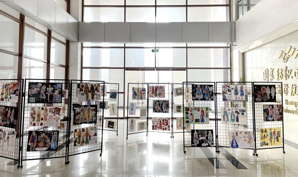 近日,我院在启智楼一楼大厅举行“织件华服献给党”系列活动之女装设计课程作品展。