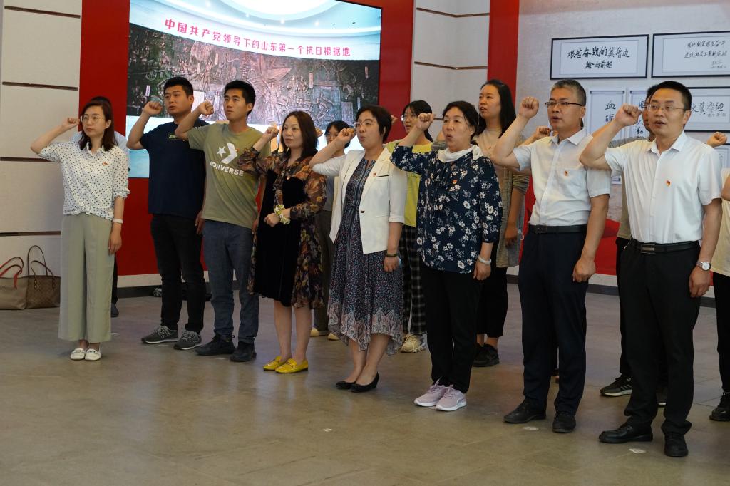 中国·ok138太阳集团一行人首先参观了冀鲁边区革命纪念馆。馆内设计突出重大事件、重大活动和著名人物,以图版、文字、实物及绘画、模型、场景、展柜、多媒体等形式,全面反映了边区军民在党的领导下波澜壮阔的革命历史,并在党旗前庄严宣誓。老师们感悟沉思,了解展品所蕴含的历史意义,重温了红色历史。
