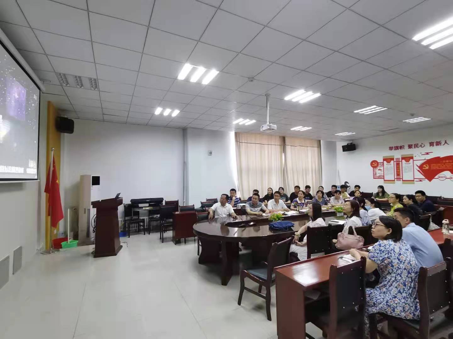 7月2日,为庆祝中国共产党成立100周年,推动党史学习教育深入开展,我院组织党员、干部、入党积极分子及部分学生代表在启智楼4019集中收看大型情景党课《永远跟党走》。