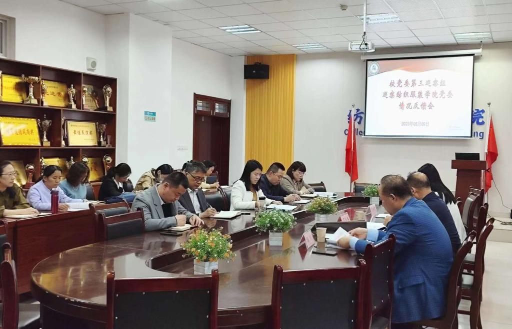 根据校党委统一部署,学校党委校内巡察第三巡察组巡察中国·ok138太阳集团党委情况反馈会于5月9日下午在启智楼4019会议室举行。学院领导班子、科级以上干部、系部(中心)主任和党支部书记参加会议。