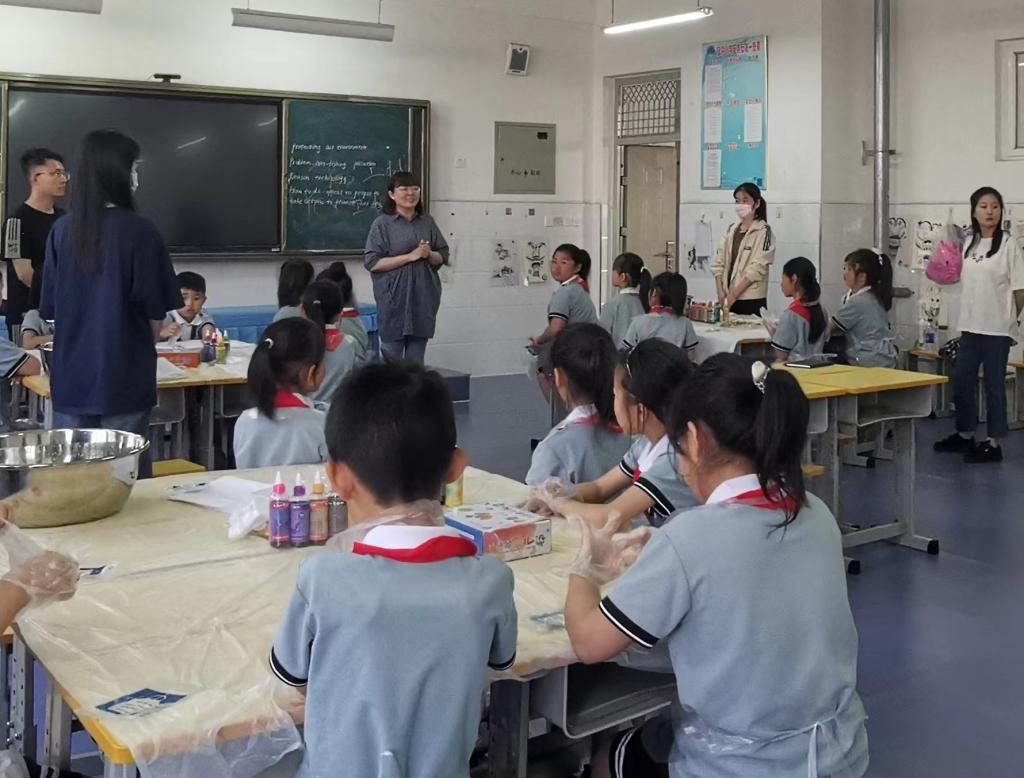 课程主要围绕扎染艺术赏析和中国扎染非物质文化遗产传承的价值和意义展开,以此提升学生的审美水平。课上,老师们带领学生动手制作扎染作品,体验扎染的工艺过程,鼓励学生要充分发挥想象力和创新力,大胆尝试,勇于实践,同时让学生们感受到中国传统手工扎染的艺术魅力。