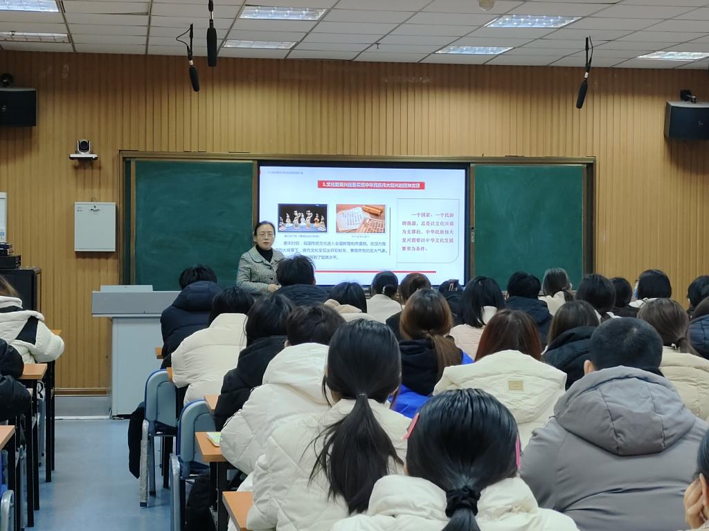 为推进学习贯彻习近平新时代中国特色社会主义思想主题教育走深走实,切实提升思政课凝心铸魂育人实效,11月24日上午,校党委委员、副校长徐静为中国·ok138太阳集团2023级服装设计与工程专业学生上了题为《以习近平文化思想为指引培养践行文化使命的时代青年》的思政课。