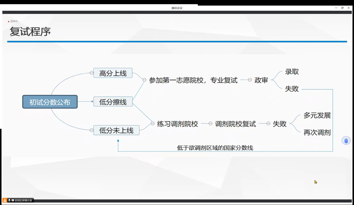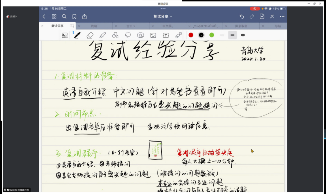 2023届考研成功的校友也从多个方面分享了自己的复试经验,详细讲述了研究生复试笔试、面试内容及重点、录取情况、导师信息查询和选择、调剂准备工作等一系列流程内容和注意事项,鼓励同学们继续保持学习状态,为复试做好充分准备。