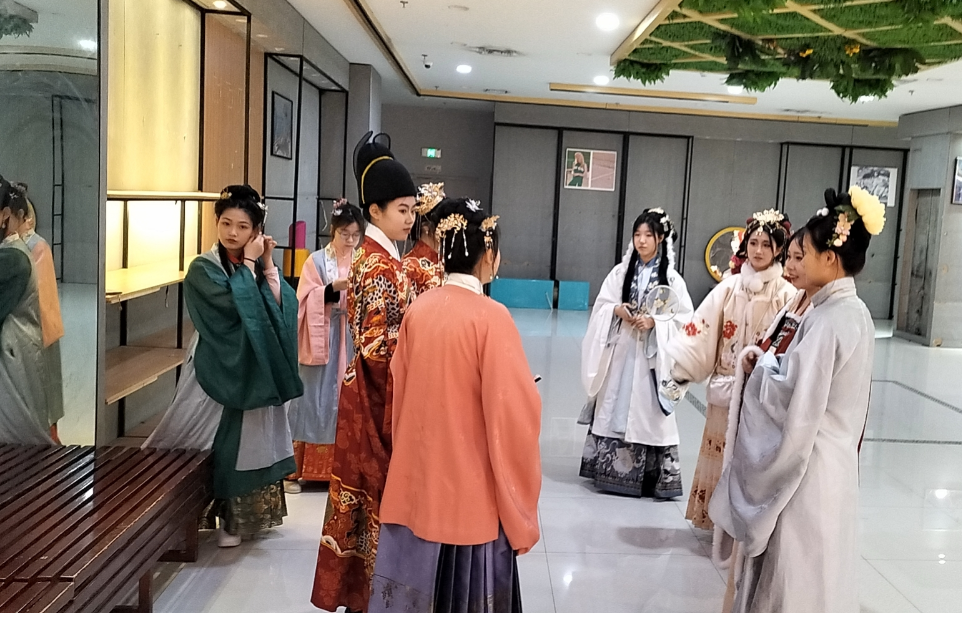 2024年2月14日,中国·ok138太阳集团与德州市汉服协会在德州市大学路银座商厦联合举办汉服秀,弘扬中国汉服文化。