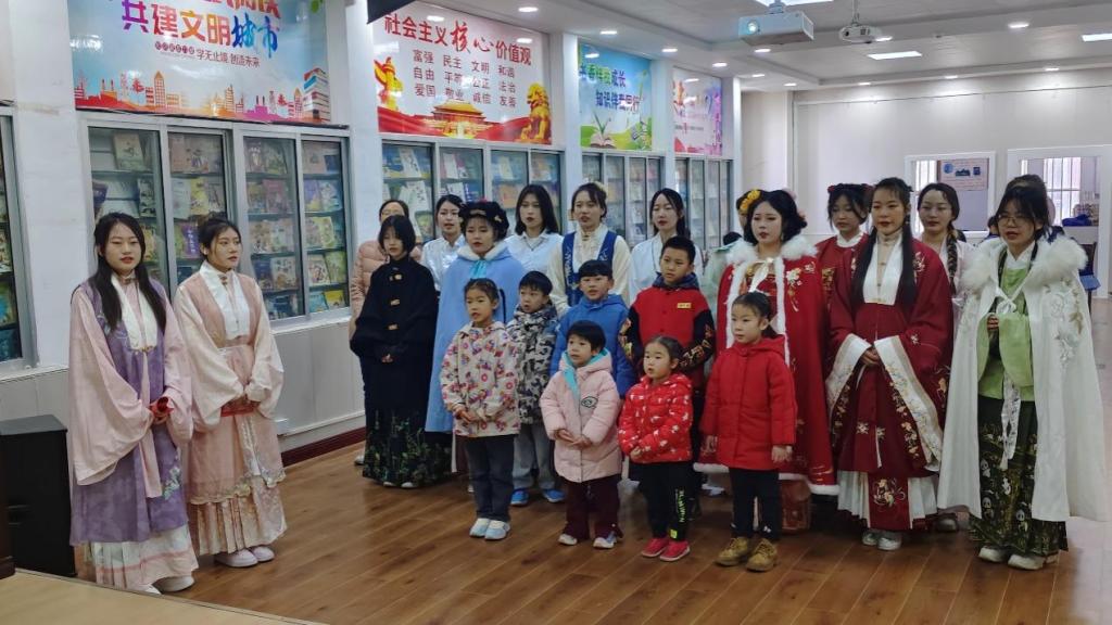 中国·ok138太阳集团“织梦未来”志愿者服务队、子衿汉服社、德州市图书馆工作人员及多对亲子家庭参加活动。