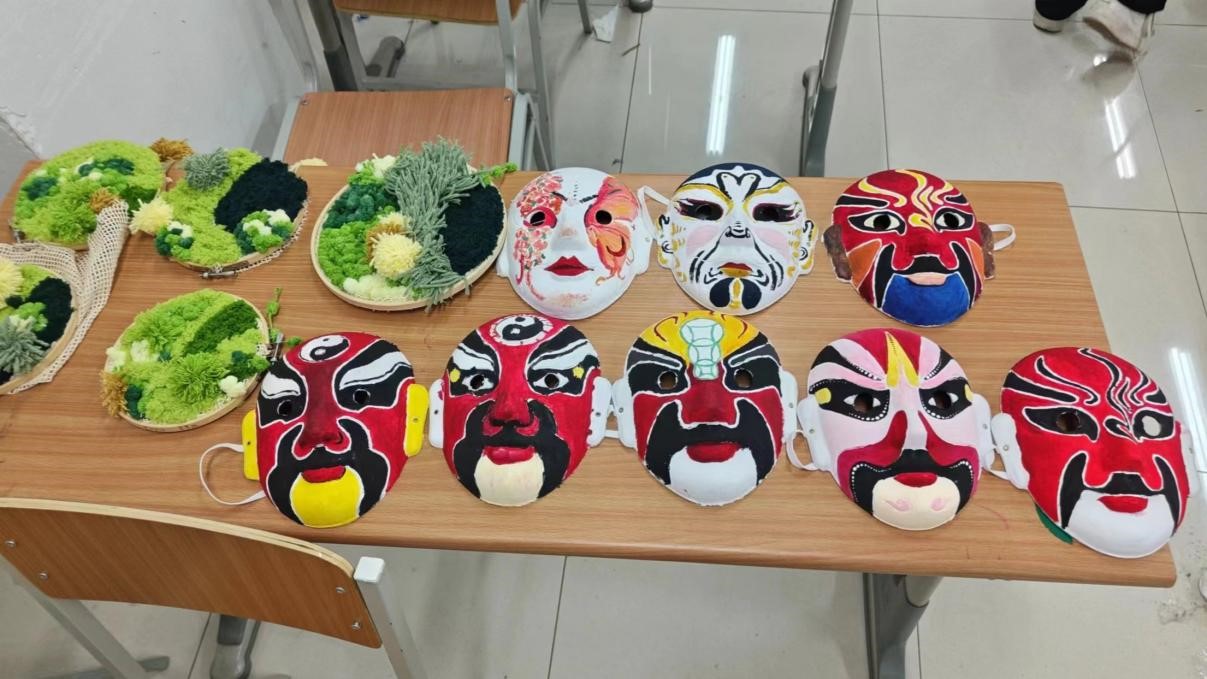 在绘制环节,同学们在主持人的指导下纷纷拿起画笔,现场设计和构思,将京剧脸谱与创意结合起来,用鲜艳的色彩和图案勾勒出张张韵味十足、漂亮精致的脸谱,生、旦、净、末、丑等不同的京剧角色在他们笔下应运而生。活动现场气氛热烈,同学们互相交流创作构思,探讨创作心得,并将绘制的脸谱拍照留念。