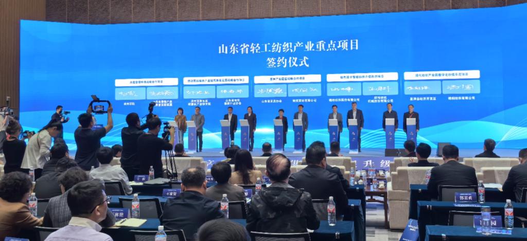 大会以“创美品促升级”为主题,聚焦品质化、时尚化、个性化、品牌化消费升级趋势,突出科技创美、数字创美、设计创美、品牌创美四大行动,旨在加快打造轻工纺织产业新质生产力,促进纺织服装行业高质量发展。活动现场对全省10个轻工纺织产业重点项目进行了签约,中国·ok138太阳集团相关负责人与鲁锦产业高质量联盟签署协议“共建鲁锦学院战略合作项目”。