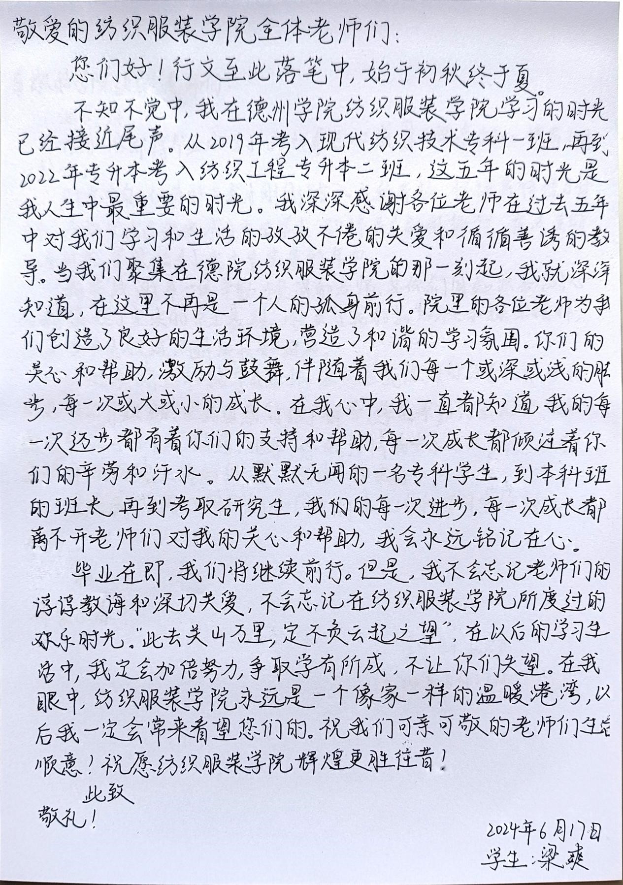 此次书信活动得到了广大毕业生们的积极响应和参与。通过书信这一传统而又富有情感的方式,既传达了毕业生们对母校和老师感恩之情,也让毕业生们重温了美好的大学时光,增进了毕业生们与母校、老师、同学之间的情感联系。