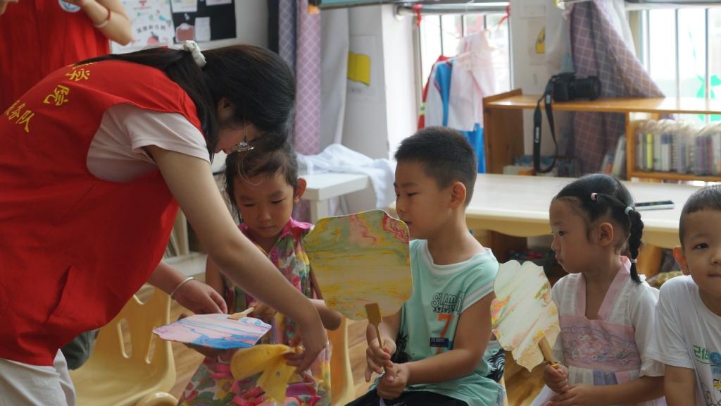 7月12日,志愿服务团带着展现古运河风情的纤维艺术挂毯与彰显传统文化魅力的鲁锦艺术挂件,走进了德州市德城区美林幼儿园,为孩子们带来了一场别开生面的运河文化盛宴。通过运河文化主题漆扇制作、纤维艺术挂毯体验以及小型织布机上的鲁锦纹样编织等活动,孩子们在动手实践中感受到了运河文化的博大精深与鲁锦技艺的独特魅力。团队成员耐心讲解,与孩子们亲密互动,不仅激发了他们对传统文化的兴趣与热爱,更在他们心中种下了文化传承的种子。