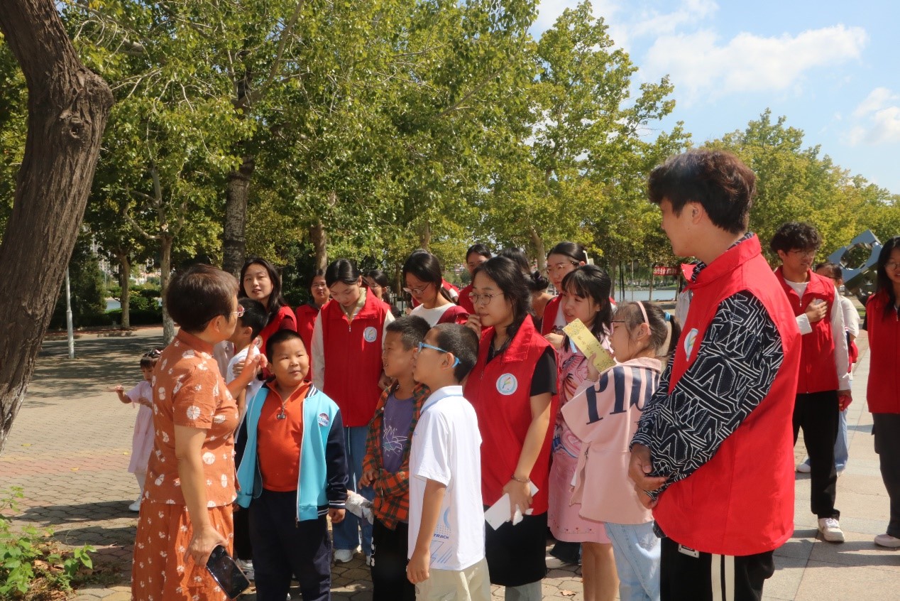本次活动共有师生诵诗词、猜灯谜、赠书签三个环节。活动伊始,学生与志愿者们在老师的引领下以饱满的情感诵读了《水调歌头》《静夜思》等经典诗词,一同感受古人对中秋节的深厚情感和对团圆的渴望。在猜灯谜环节,灯谜以其特有的趣味性与知识性激发了同学们的浓厚兴趣,同学们积极思考,竞相解答,充分展现了同学们丰富的知识储备与个人智慧。在赠书签环节,同学们在精美书签上写下祝福语并互相交换,以独特的形式传递节日的问候与祝福。活动最后,同学们在老师的带领下来到德州市图书馆的园林中漫步,欣赏中秋主题装饰,感受节日的和谐氛围。
