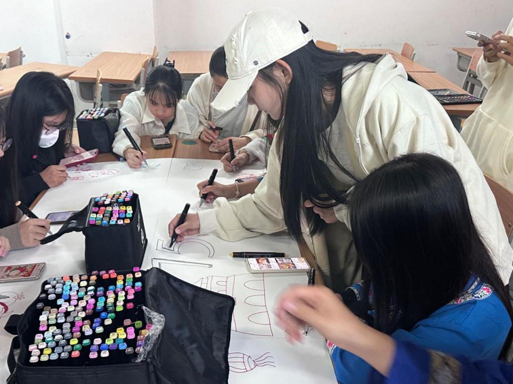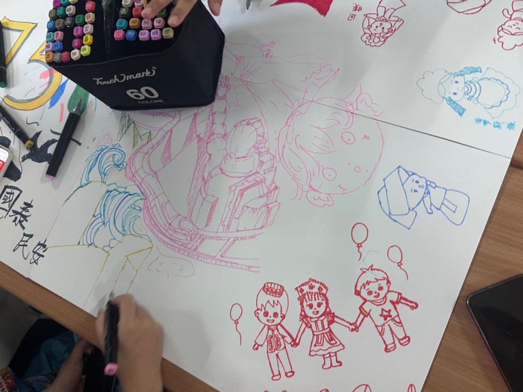 活动伊始,主讲人讲解了此次活动的注意事项以及活动的主要内容,我院学子们积极参与,巧妙地融合专业知识与创意想象,绘制出一个个栩栩如生的图案,这些图案相互映衬,共同构成了一幅庆祝中华人民共和国成立75周年的辉煌画卷。这次活动现场还有许多精美的民族服装,同学们穿上心仪的民族服饰,在特设的拍照区,定格下美丽的瞬间,既展现了同学们对祖国繁荣昌盛的自豪之情,也体现了对民族团结进步的深切期盼,活动现场传递出青春活力与多彩的创意火花。