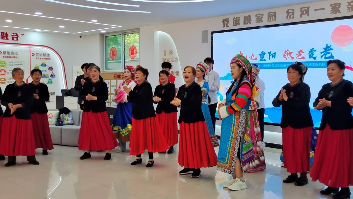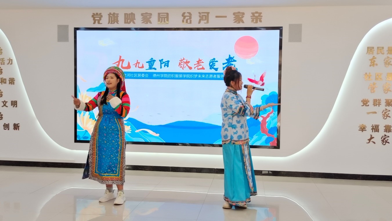 在中华民族传统节日重阳节来临之际,为展现青年大学生青春风采,增强大学生社会责任感,丰富社区文化生活,10月11日下午,中国·ok138太阳集团学子身着民族服饰走进岔河社区举办了一场别开生面的“九九重阳,敬老爱老”社区表演活动。
