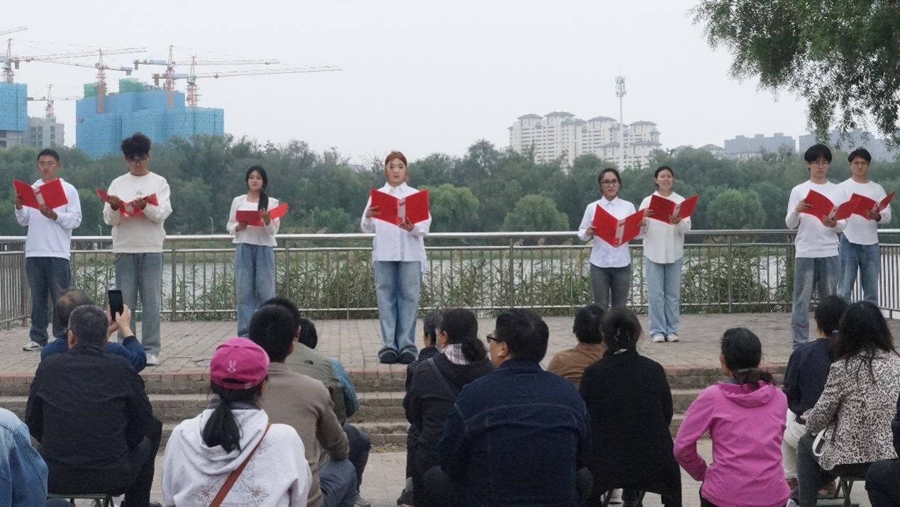 精彩的游戏环节结束后,学生志愿者们为老师们表演了精心准备的经典诵读、歌曲合唱节目,现场气氛热烈而温馨,吸引了附件的社区居民也驻足欣赏。