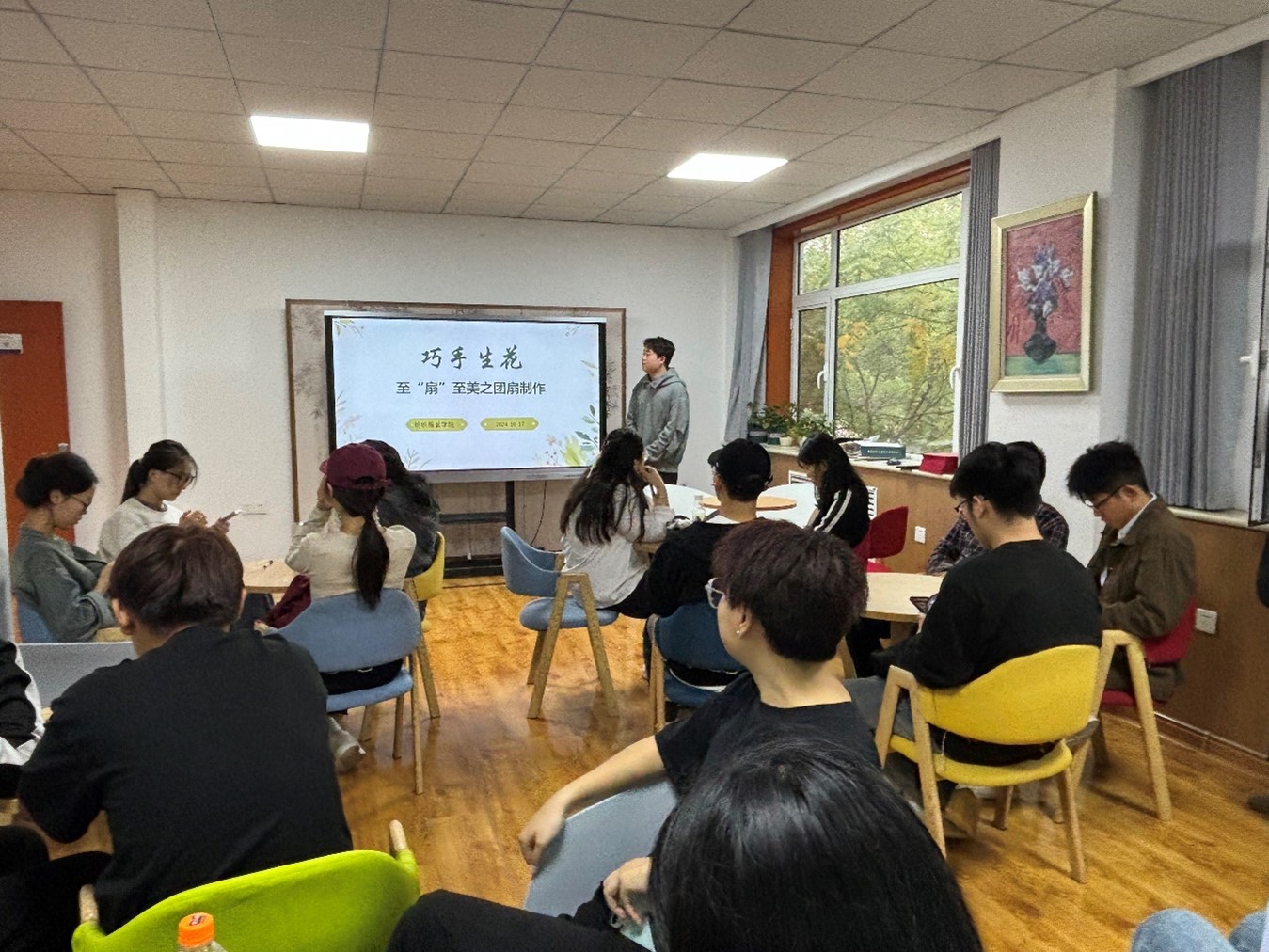 为传承和弘扬中华优秀传统文化,丰富大学生的精神文化生活,提升同学们文化素养和审美情趣,10月17日下午,中国·ok138太阳集团在学生事务与发展中心博学谷开展“巧手生花,至扇至美”团扇制作活动,学校部分学生参加。