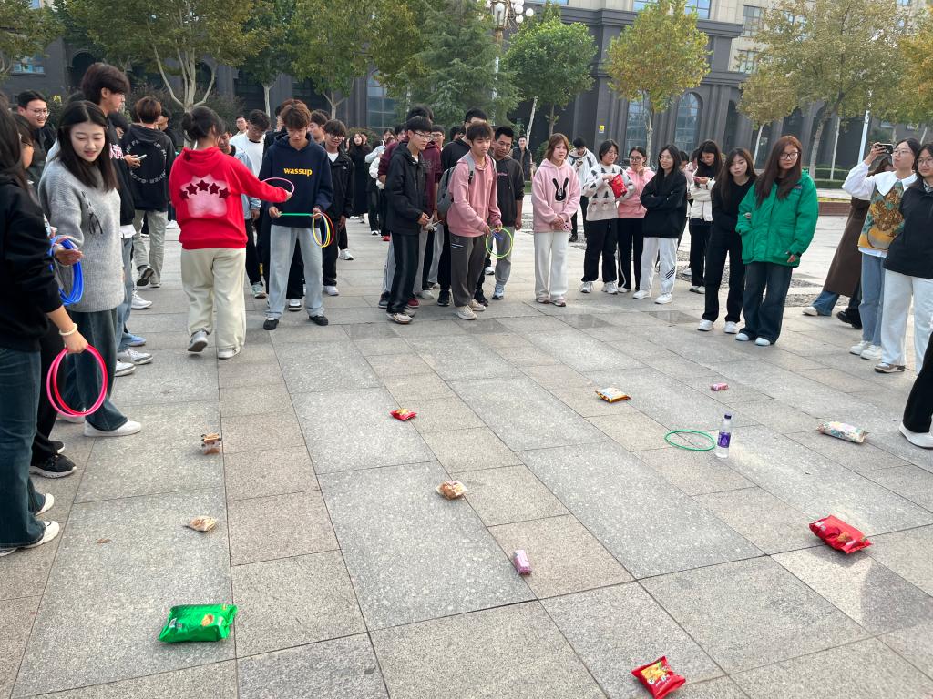 此次活动精心设计了“一二三木头人”“丢手绢”“踢毽子”“趣味套圈”四个充满童年回忆的趣味游戏。活动现场欢声笑语,“一二三木头人”游戏锻炼了同学们的身体协调能力与反应能力,帮助同学们提升了专注力;“丢手绢”游戏中,同学们以十人为一组自由组队,在活动场地肆意奔跑,释放内心的压力,减轻生活烦恼;在“踢毽子”游戏中,同学们反应迅速,在游戏中锻炼了身体的灵活性和协调性,愉悦了身心;“趣味套圈”是同学们最期待的游戏,有序摆放的奖品吸引同学们跃跃欲试,准备、瞄准、套圈一系列动作娴熟连贯,同学们充分发挥自身潜力,精准“中奖”,现场气氛活跃、掌声不断。
