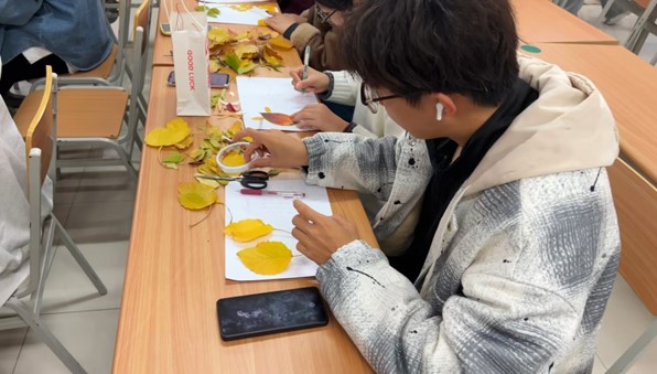 活动伊始,他们巧妙地运用现场准备的树枝、细绳、卡纸等材料,充分发挥自己的想象力和创造力,将落叶修剪、拼接、粘贴,经过同学们的精心制作,一系列风格各异的落叶手工艺品逐一呈现,每一件作品都凝聚着同学们的匠心巧思和对自然之美的独到理解,同学们纷纷表示,这不仅是一种环保的创意方式,还是能让我们更加亲近大自然,感受季节的更替之美的奇妙体验。