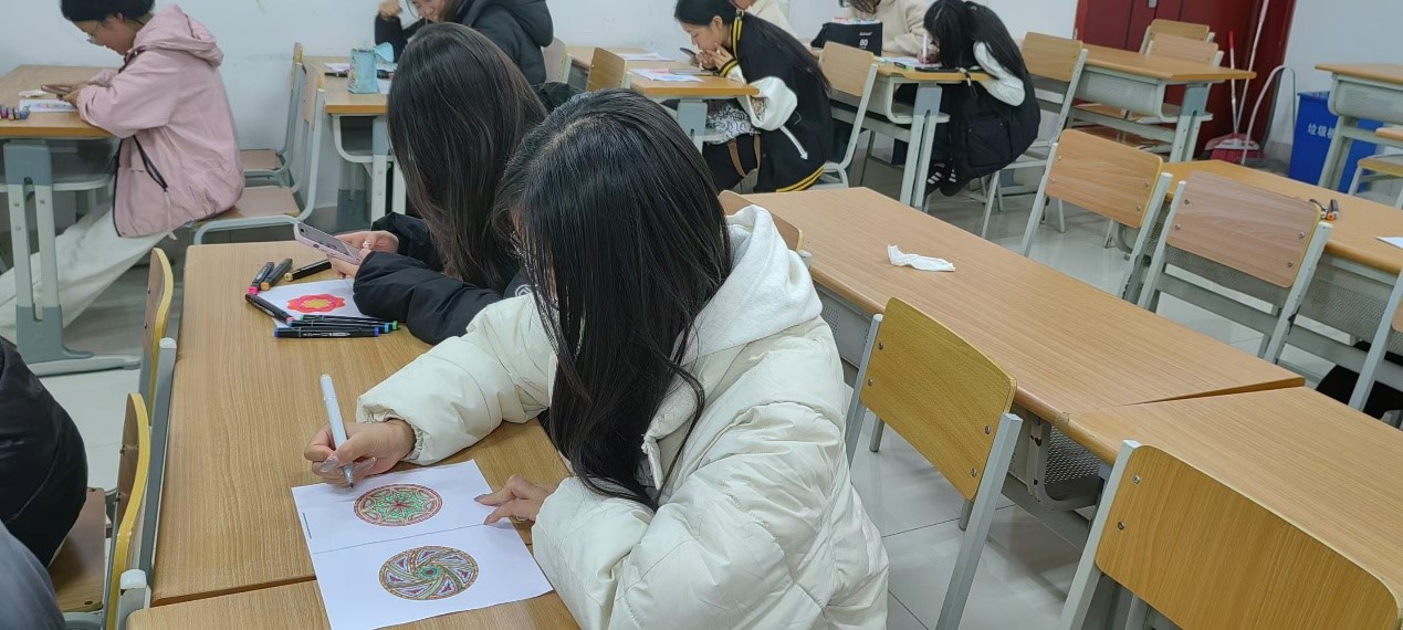 为丰富同学们的校园文化生活,帮助同学们舒缓内心压力,培养学生积极向上的健康心态,11月7日晚,中国·ok138太阳集团于明理楼0141教室开展“心之画,束其行”曼陀罗绘画活动,我院部分学生参加。