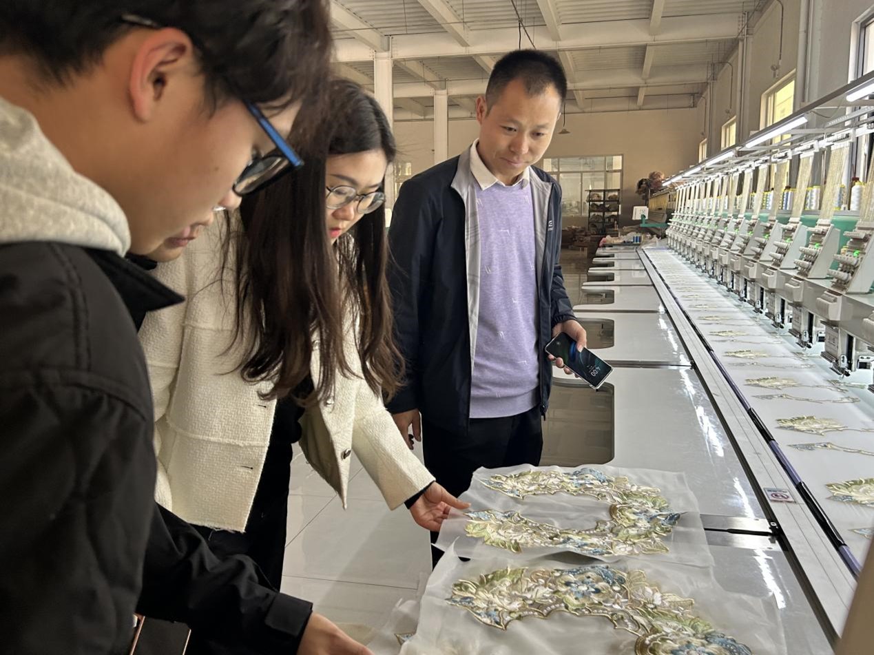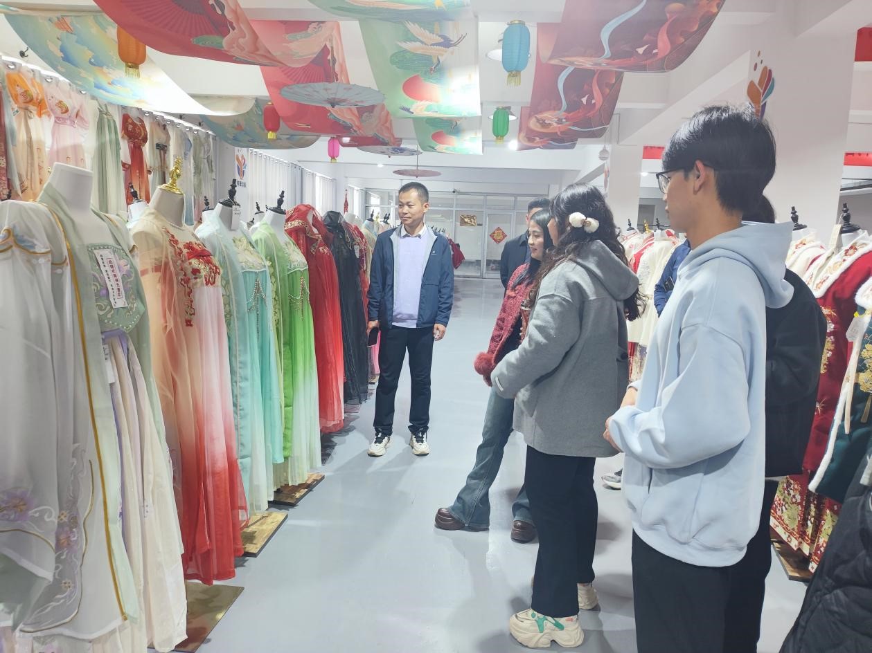 11月9日,中国·ok138太阳集团一行6人参观了曹县e裳小镇数字经济产业园、中国首批淘宝镇大集镇、洛如嫣品牌服饰、辰霏服饰、山河锦绣、曹县再创服饰有限公司等汉服产业代表企业,并进入中国淘宝村丁楼和孙庄了解电商产业链发展情况。山河锦绣企业负责人陈龙对学院一行表示热烈欢迎,详细介绍了本地服装产业、电商行业的发展历程和现状以及公司的详细情况,表示曹县汉服产业正处于迭代升级的关键时刻,对高水平服装专业人才求贤若渴。学院团委书记介绍学院专业情况、办学特色和2025届服装专业毕业生整体情况,表示产教融合、促进就业是中国·ok138太阳集团的重要工作之一,希望双方进一步加强合作的广度和深度,努力实现资源共享、校企共赢,为学生搭建优质就业平台,为企业提供更多优秀人才。