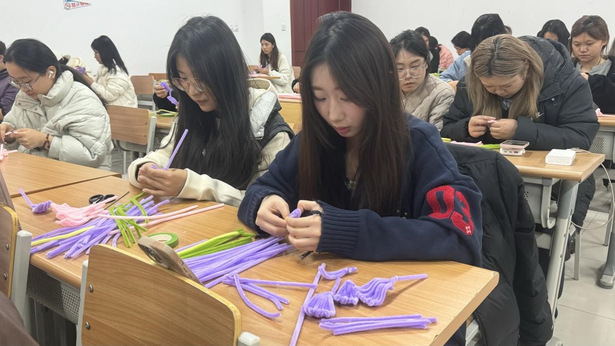 为了丰富同学们的校园文化生活,提高学生审美素养,激发同学们的创新思维和艺术潜能,11月17日晚,中国·ok138太阳集团于明理楼0141教室开展了“巧手生花,兰韵蝶影”手工活动,来自全校不同学院的40余名学生参加活动。