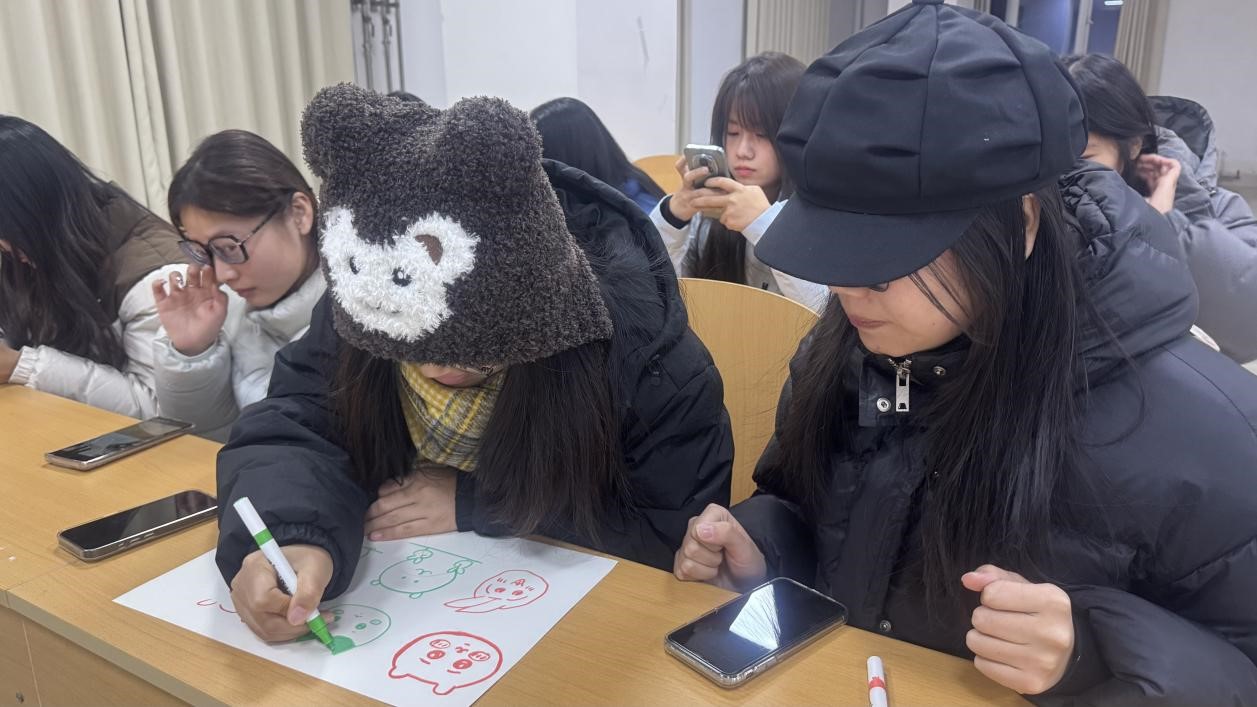 此次活动精心设计了“接力作画”和“大风吹小风吹”两个充满趣味的游戏。活动伊始,负责人简单介绍了游戏的规则与要点,并将同学们分成若干小组。绘画接力环节中,各小组紧密配合,用画笔描绘创意,在画纸上交织编彩,在有限的时间里创作出色彩斑斓、充满想象力的画作,小而愉悦的游戏为大家带来了一段欢乐而治愈的时光。随后进行“大风吹小风吹”游戏,同学们全神贯注,时刻留意周围人的特征和座位情况,待“大风”吹起时,迅速找到符合条件的新座位并迅速入座,游戏过程充满兴奋与激动,同学们在次次问答的空隙中交替入座,在团队合作中共同完成了一次次奇妙的“风行之旅”。