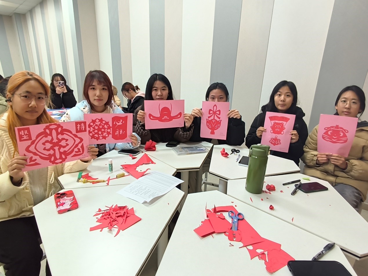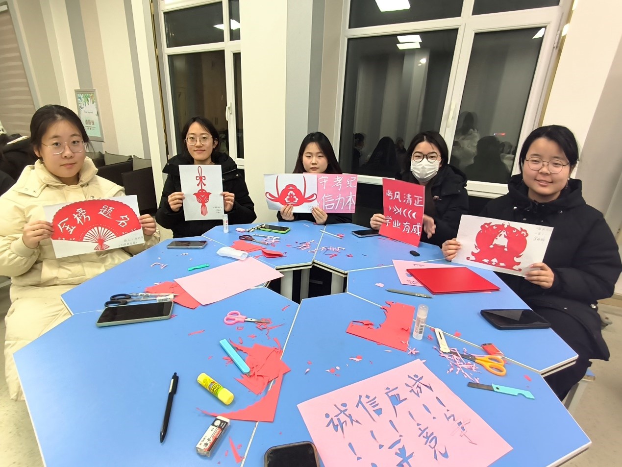 此次活动以中华优秀传统文化剪纸艺术浸润学生心灵,让同学们在紧张的期末复习中寻得一片心灵的宁静与放松之地,同学们在专注剪纸的过程中充分发挥创造力和想象力,舒缓紧张情绪,增强了团队协作能力,帮助同学们以更积极的状态迎接期末考试。
