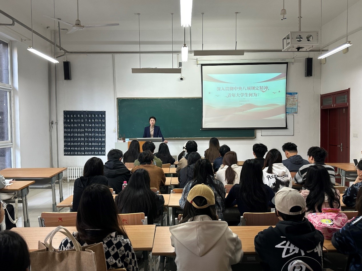 我院党委书记从是什么、为什么、怎么做三个维度展开讲解,对中央八项规定精神作了系统宣讲和深入阐释,并结合习近平总书记对青年的殷切期望,向同学们提出三点希望:一是勤奋学习、积极实践,提升专业素养,增强社会责任感;二是树立正确价值观,践行优良品质,抵制不良诱惑;三是爱国励志、担当作为,将个人成长与国家发展相结合,为实现中华民族伟大复兴的中国梦贡献青春力量。课后,学生们一致表示,将自觉践行中央八项规定精神,从身边小事做起,争做优良作风的践行者和弘扬者。