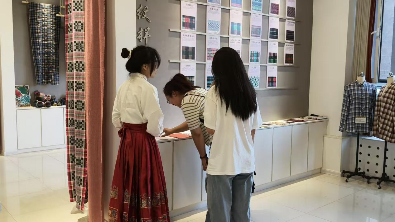 此次参观活动在讲解员的引领下有序展开。面料馆内陈列了从传统天然纤维到现代高科技功能面料的丰富展品,新生和家长们依次参观了染撷展厅、历代服饰展厅和鲁锦展厅,深入了解各种面料的原料特性、生产工艺和应用领域。讲解员结合当前行业发展趋势,重点介绍了创新面料的科技原理和市场前景。学生和家长表现出浓厚兴趣,纷纷驻足观看,亲手触摸感受面料质感,并就面料相关问题与讲解员进行深入交流,现场气氛十分浓厚。
