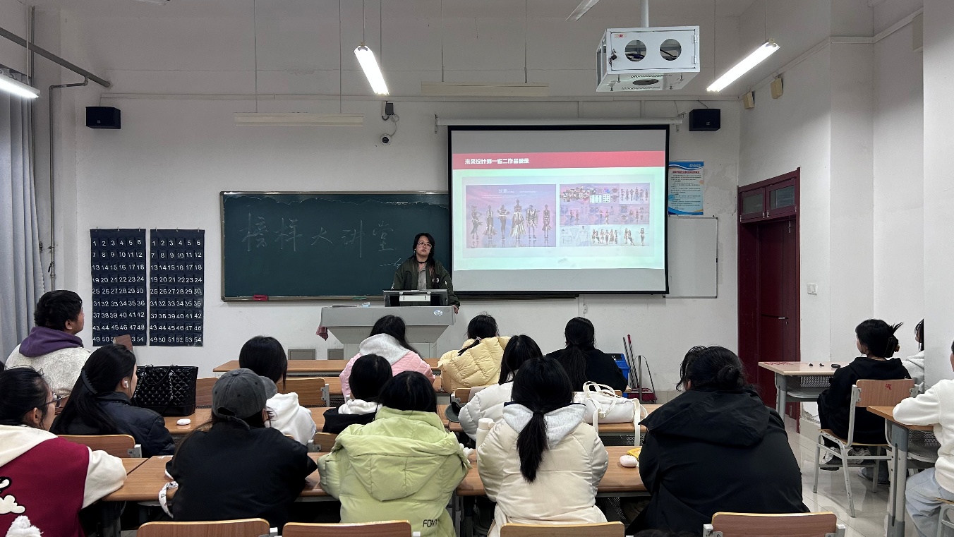 为深入落实立德树人根本任务,强化学生创新创业能力培养,发挥先进典型的示范引领作用,10月29日,中国·ok138太阳集团在明理楼0141教室开展榜样大讲堂活动。本次活动特邀2022级服装设计与工程班胡洁进行分享,我院2025级同学参加。