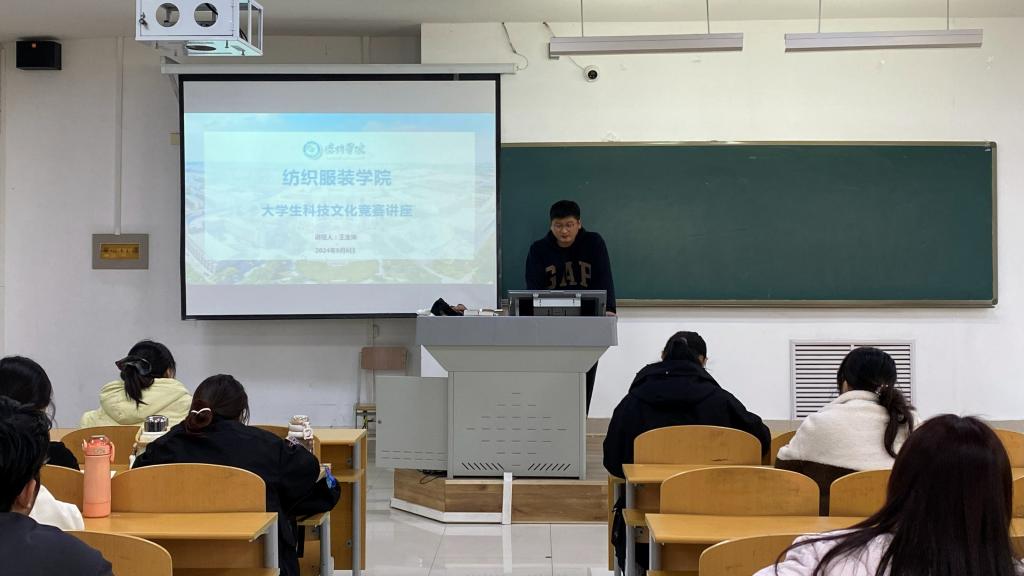 活动开始,主讲人阐释了大学生科技文化竞赛的内涵与核心价值,强调其是连接课堂理论与实践应用的关键桥梁,能锤炼学生创新思维、实践能力与综合素质,并结合学院专业特色梳理各级重点赛事。详细介绍了中国国际“互联网+”创新创业大赛、“挑战杯”系列竞赛等项目的主办单位、赛制流程与评审标准;同时推荐米兰设计周高校设计作品展、全国大学生绿色染整科技创新大赛等行业特色赛事,提供多元化参赛选择。同学们纷纷表示,主讲人清晰讲解了各赛事的参与流程,为竞赛备赛提供了实用指引。
