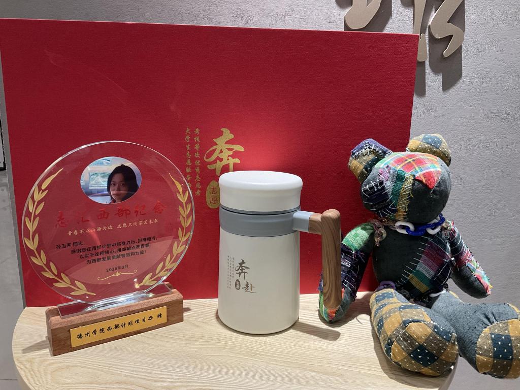 大学生志愿服务西部计划是党中央、国务院引导和鼓励高校毕业生到基层就业创业的重要战略举措,是引导新时代青年学子扎根西部、服务基层、奉献社会的重要载体。孙玉芹、杨兰两位同学在校期间始终品学兼优,热心公益事业、践行志愿精神,毕业后主动响应国家号召,坚定投身西部建设,奔赴基层一线开展志愿服务。服务期间,两位同学始终牢记初心使命、强化责任担当,以高度的政治责任感和历史使命感全身心投入各项工作,在多个领域深耕细作、担当作为,用实际行动生动践行了“奉献、友爱、互助、进步”的志愿精神,充分展现了新时代青年的责任与担当。学校为两位获奖同学颁发专属纪念奖品,既是对她们扎根基层、无私奉献突出贡献的表彰与肯定,更是为全院学子树立了可感可学的榜样标杆,激励广大青年学子以先进典型为引领,勇担时代使命,在基层一线绽放青春光彩、书写青春华章。