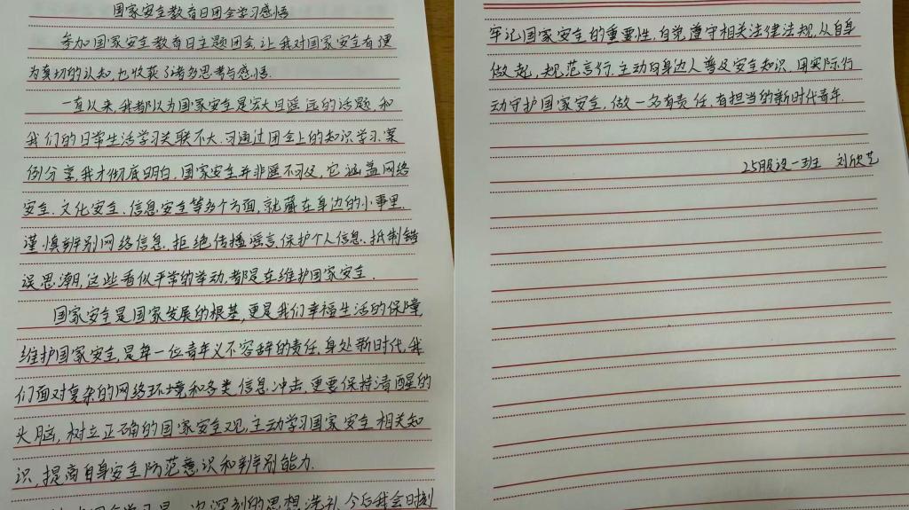 各团支部书记围绕全民国家安全教育日主题组织学习,通过PPT宣讲的形式系统介绍了教育日的设立背景与意义,深入解读总体国家安全观,分析当前内外安全风险与法治要求。同时,带领团员青年重点研读了《中华人民共和国国家安全法》第七十七条明确的公民七项核心义务,并结合典型案例,详细讲解了颠覆国家政权、分裂国家、间谍行为、窃取和泄露国家秘密等危害国家安全的行为及对应罪名。最后,各团支部书记结合大学生日常学习生活实际,对维护国家安全的实操要求作出总结,强调要增强风险识别与防范能力,遇涉密物品及时上交、发现违法线索及时举报、遇到危害行为主动制止并上报,切实筑牢思想与行动安全防线。同学们纷纷表示:国家安全关乎你我,既是安邦定国的基石,更是身边日常。通过此次学习让他们明确了法定义务,承诺从小事开始践行,以青春之力守护国家安全。