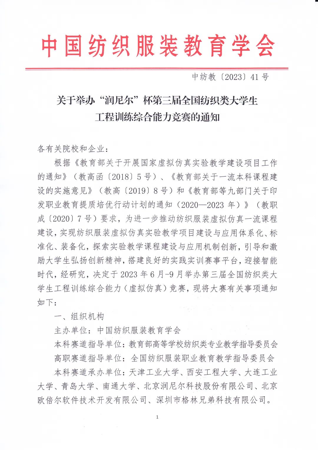 关于举办“润尼尔”杯第三届全国纺织类大学生工程训练综合能力竞赛的通知