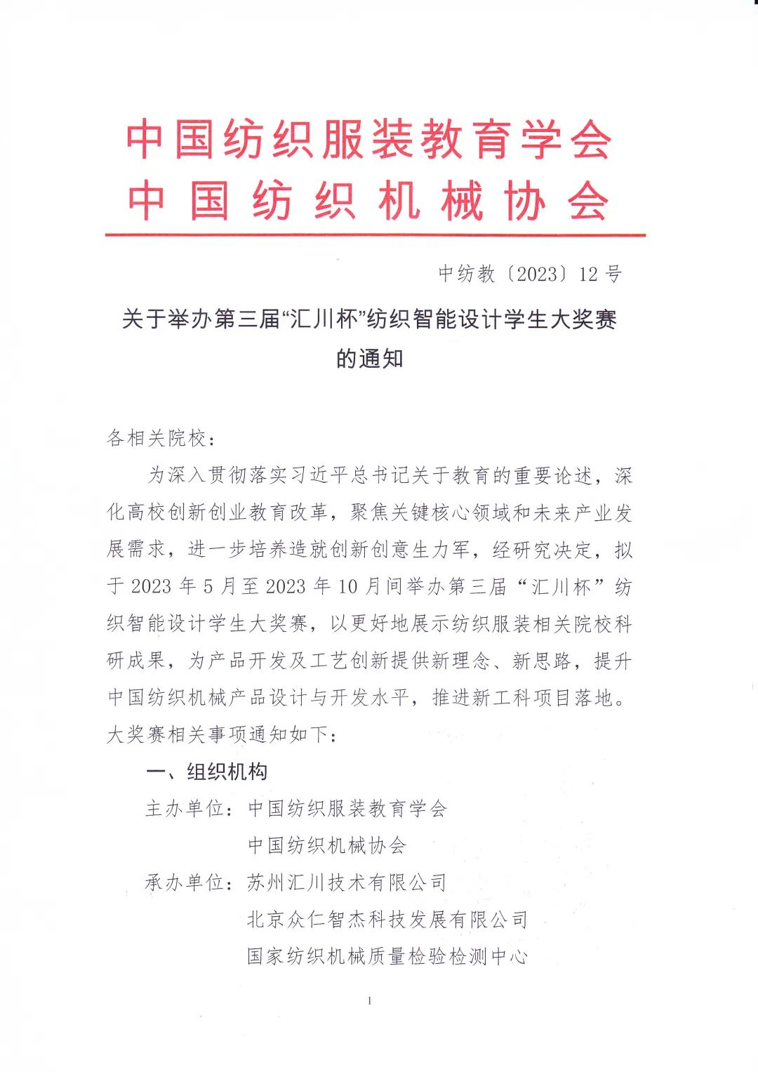 关于举办第三届“汇川杯”纺织智能设计学生大奖赛的通知
