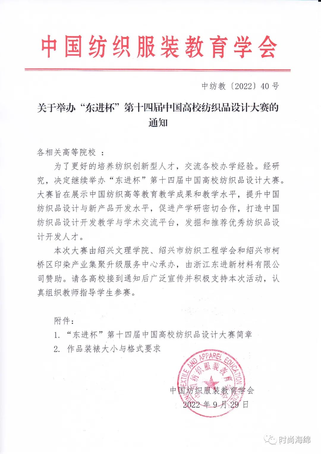 附件1:“东进杯”第十四届中国高校纺织品设计大赛简章