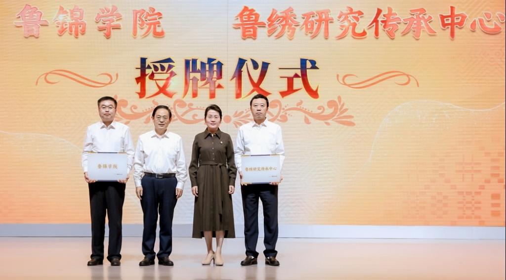 我校党委副书记、校长赵长林,党委委员、副校长徐静受邀出席开幕式。山东省工信厅厅长张海波与赵长林共同为我校鲁锦学院揭牌。