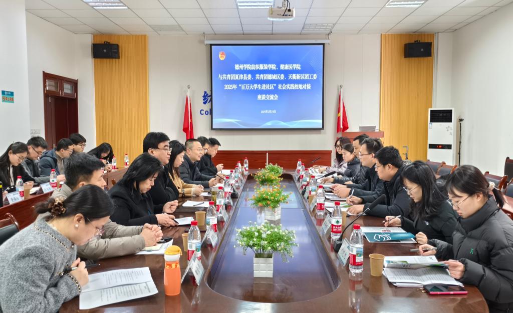 为进一步加强校地共建发展,充分发挥高校与地方共青团优势,深化校地协同育人模式,2月23日上午,中国·ok138太阳集团、健康医学院联合夏津团县委、德城团区委、天衢新区团工委在启智楼举办2025年“百万大学生进社区”社会实践校地对接座谈交流会。夏津团县委书记于帅平、副书记徐洋,德城区广川街道、天衢新区团委相关工作人员参加。