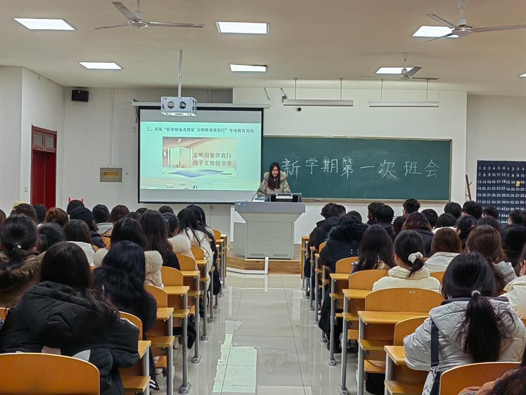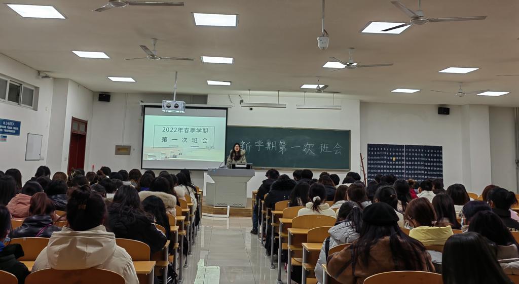 新学期伊始,为使同学们尽快适应新学期,在思想上和行动上尽快完成从假期到开学的转变,2月20日晚,我院在明理楼开展了2022学年春季学期第一次班会,采用线上线下相结合的方式,学院党委领导班子、辅导员、班主任及全体同学参加了本次班会。