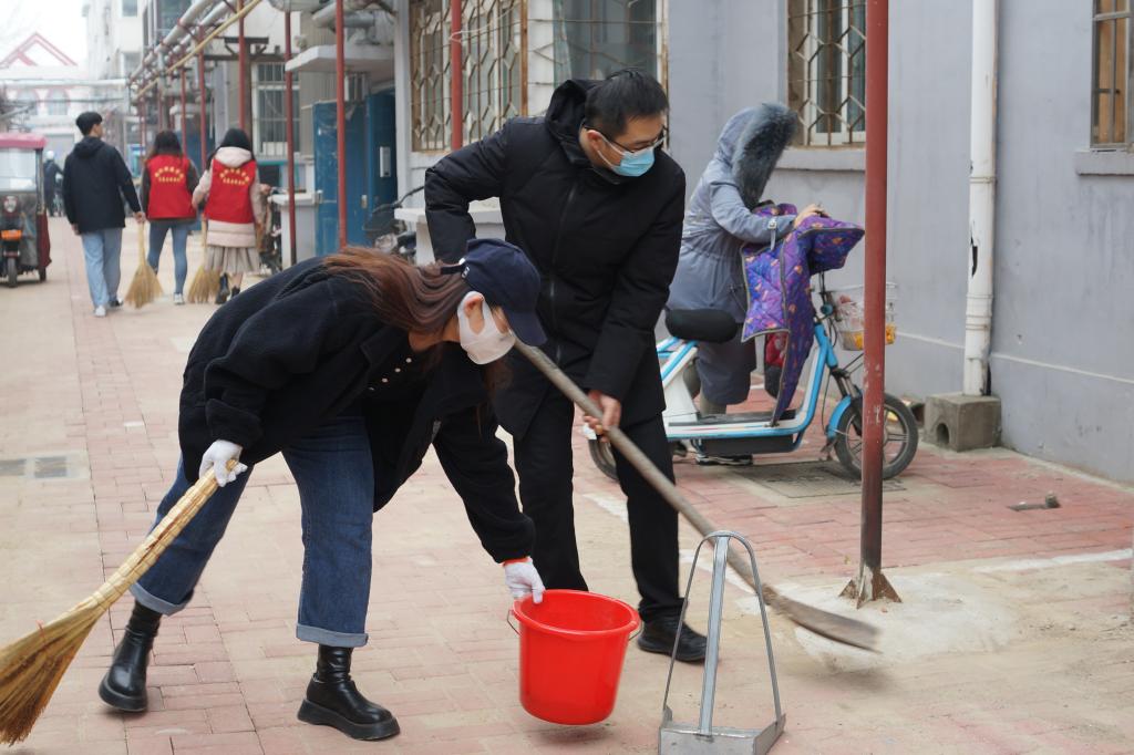 活动开始,各部门负责人以小组的形式分配劳动工具以及劳动任务。在志愿服务过程中,党员志愿者们不怕脏、不怕累,分工协作,干劲十足,认真地清理小区内道路、楼体内外的环境卫生。在大家的共同努力下,所负责区域的面貌焕然一新,获得了社区居民的一致好评。在清理卫生的同时,志愿者们还向社区居民分发了《德州市民文明手册》,并进行了细致讲解,引导居民共同参与到城市文明创建中。