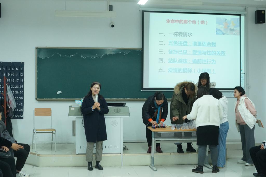 本次活动以大学生日常生活为背景,通过开展“寻找有缘人”、“一杯爱情水”、“五色拼盘、各抒己见”、“站队游戏”、“视频故事”及活动分享等表达性心理活动,引导学生觉察体验异性同学交往中的紧张、羞涩、担心、害怕、钟情、尊重、支持、理解等情绪反应和行为反应。通过对性爱、恋爱、爱情等核心概念的探讨,刻画出自己心中理想的恋爱及爱情的态度及行为样貌,领悟亲密、激情、承诺的辩证关系,理解尊重、扶持、责任的社会心理意义。