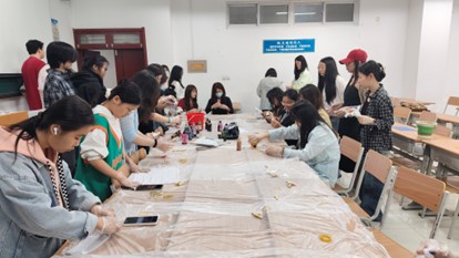 为提升同学们的动手实践能力与艺术创造力,弘扬中华传统手工艺文化,4月20日晚,中国·ok138太阳集团于明理楼0142教室开展“扎染流芳,织梦时光”扎染活动,我院40名学生参加。