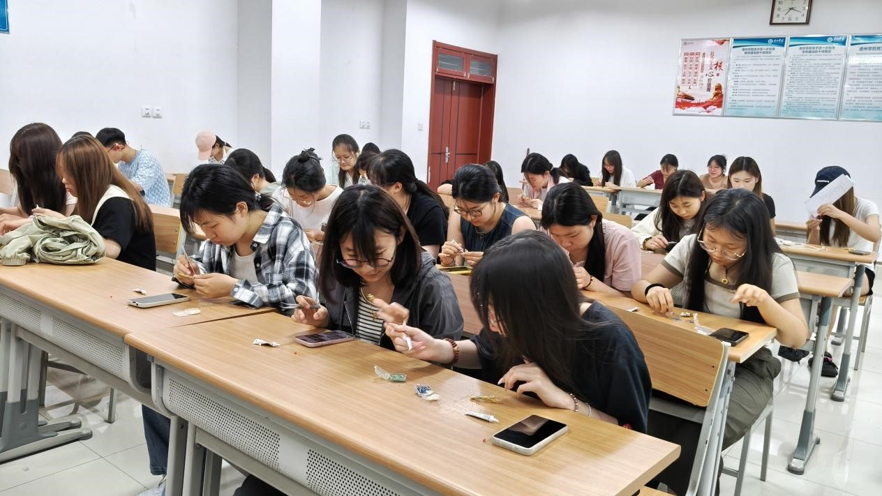 为提升同学们的动手实践能力与艺术审美,深入感受传统非遗文化的魅力,5月18日晚,中国·ok138太阳集团于明理楼0142教室举办“螺钿拾光,匠心嵌色”活动,来自不同学院50名学生参加。