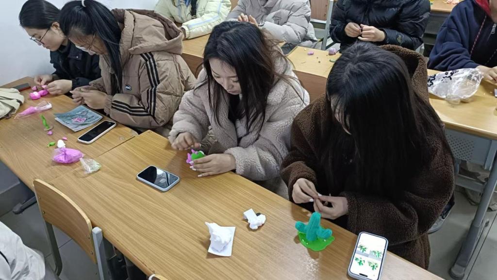活动现场准备了超轻黏土、彩色卡纸及马克笔等创作物料。同学们完成签到后,开始趣味创作。在黏土制作过程中,各小组分工协作,严格依照图纸进行塑形,将对大学生活的憧憬与内心的情绪投射于作品之中,塑造出一个个灵动鲜活的造型;在折纸环节,同学们充分发挥想象力,在千纸鹤、纸船等经典造型的基础上进行创意涂鸦,展现了独特的艺术构思。活动现场氛围融洽,同学们纷纷表示,此次活动不仅让大家从繁忙的学习生活中获得动手创作的乐趣,更提供了一个释放压力、舒缓身心的契机。