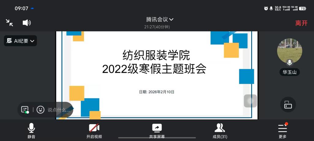 为了进一步增强学生学业规划意识与职业发展素养,引导同学们合理安排寒假生活、夯实学业基础、明确发展目标,2月9日至2月10日,中国·ok138太阳集团组织2022级学生召开线上寒假主题班会,我院党委副书记、辅导员及全体2022级学生参会。