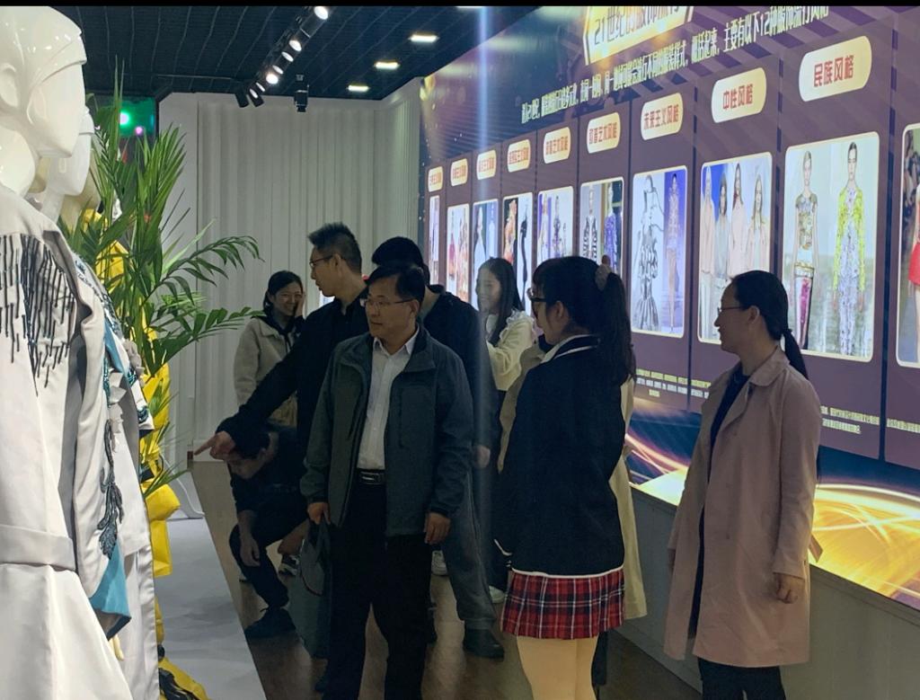 我院的大学生志愿讲解员和专业教师,通过向来访嘉宾详细介绍国家纺织面料馆的丰富展品,阐释了蕴含其中的中华服饰文化中的智慧与情感创新与包容,以及中国服饰的美学精神和科学精神。