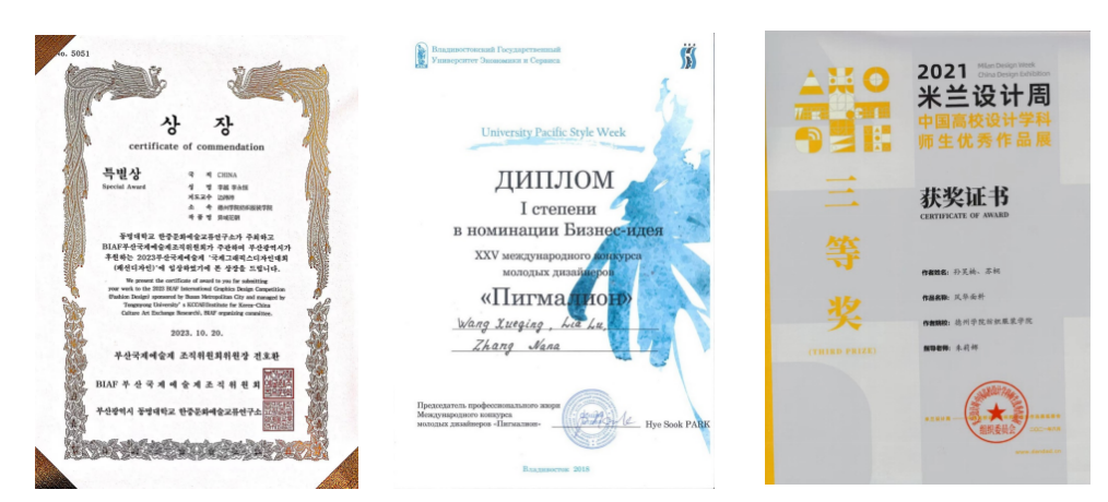 该专业实践教学注重“实践+技术+艺术+产业”的理念,依托山东省现代纺织服装产业学院、山东省实验教学示范中心、山东鲁泰等30多个稳定的校外实习基地和 3个合作研究中心,实施“产创”、“产教”、“产学”交融培养模式。在培养过程中,学生有机会进行包括服装设计、打版、面料二次设计、印染、裁剪、缝制、搭配、展示等各个环节的实践操作。同时,学生通过参加各种设计大赛,达到“以赛代练”的目的,提高实践能力和经验。近年来多名学生获得全国服装设计大赛铜奖和优胜奖,获得省级服装设计类大赛和花样设计大赛奖项达100余项,获得“挑战杯”全国大学生创业计划大赛创业计划大赛特等奖1项和优秀奖多项。