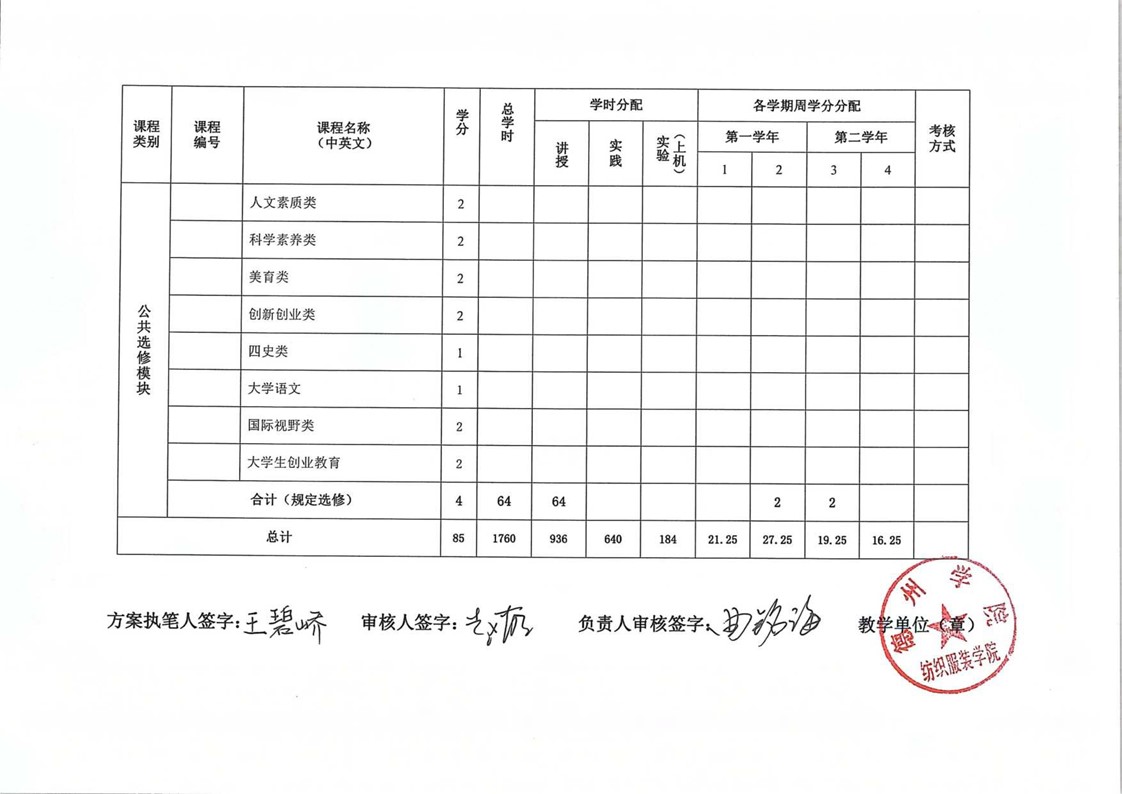 纺织化学(32 学时)、纺织材料学(64 学时)、纺纱学(64 学时)、织造学(64学时)、针织学(48 学时)、织物组织结构(32 学时)、非织造布技术(32 学时)、染整学(32 学时)、纺织品设计(32 学时)